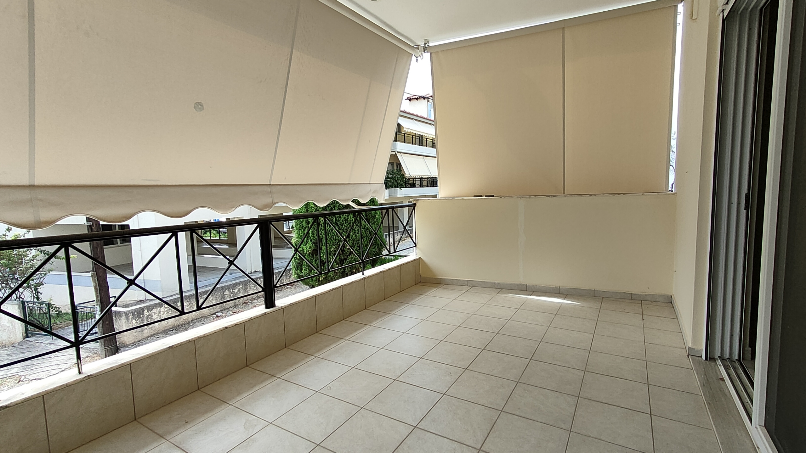🌳 Θέα σε Πράσινο από το μεγάλο μπαλκόνι προσόψεως (με τέντες).